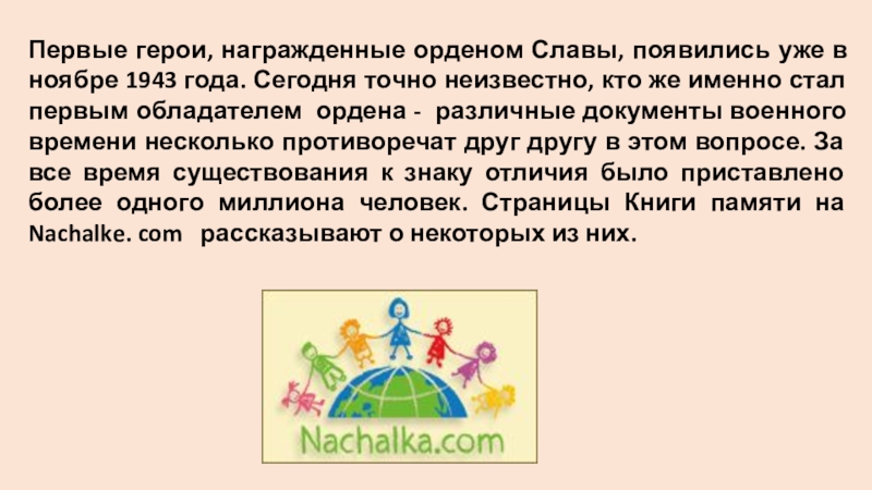 Слайд 29Первые герои, награжденные орденом Славы, появились уже в ноябре 1943 года.