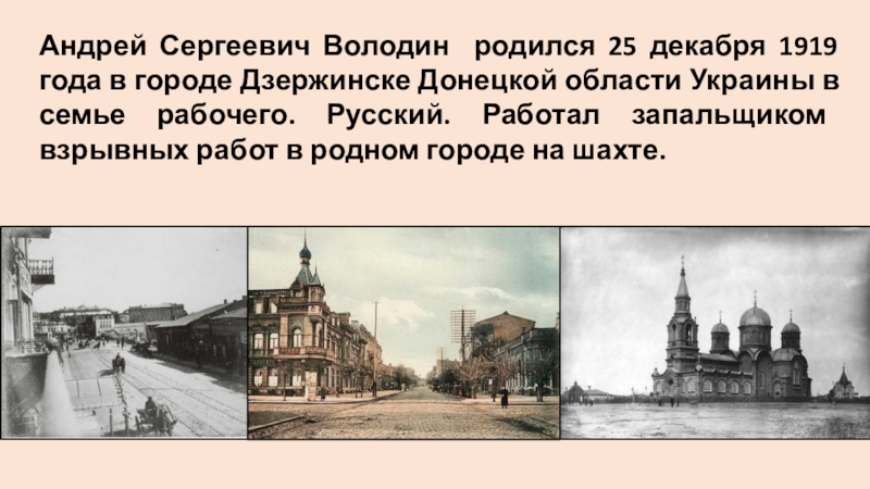 Слайд 16Андрей Сергеевич Володин родился 25 декабря 1919 года в городе Дзержинске