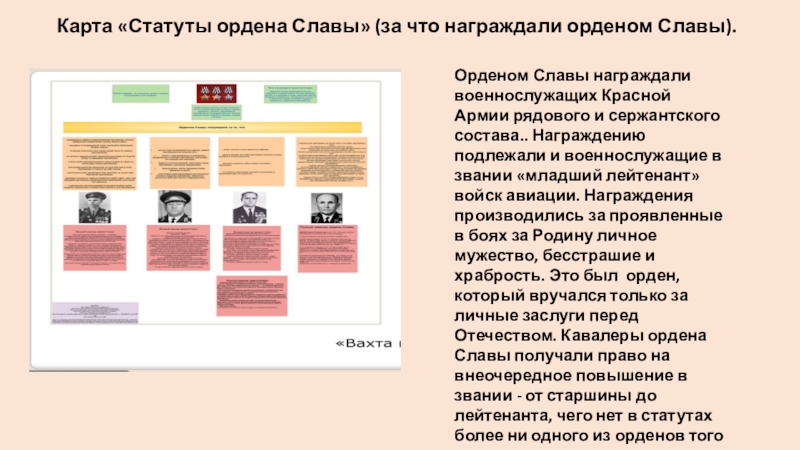 Слайд 9Карта «Статуты ордена Славы» (за что награждали орденом Славы).