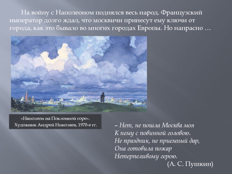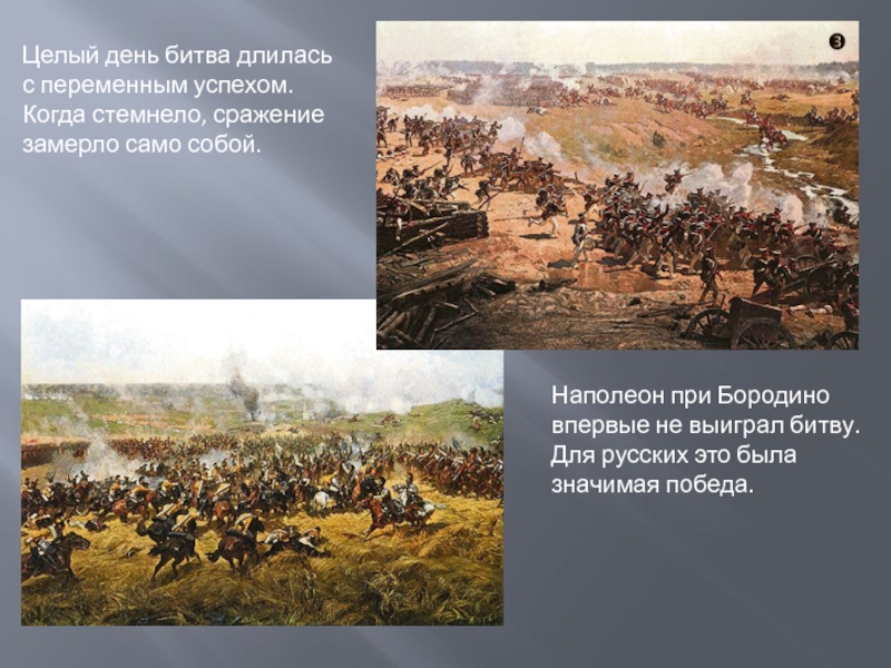 Наполеон при Бородино впервые не выиграл битву. Для русских это была значимая победа.