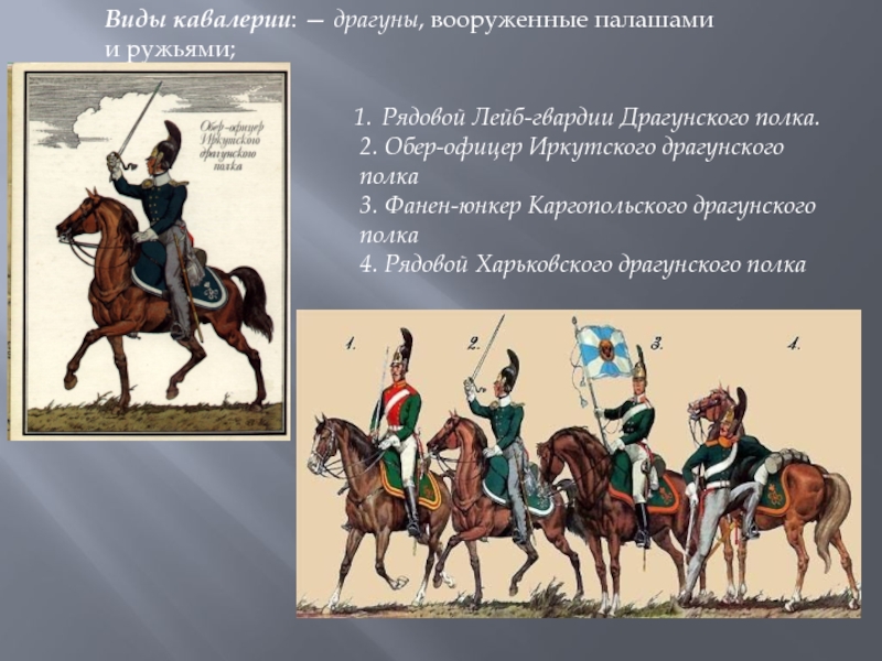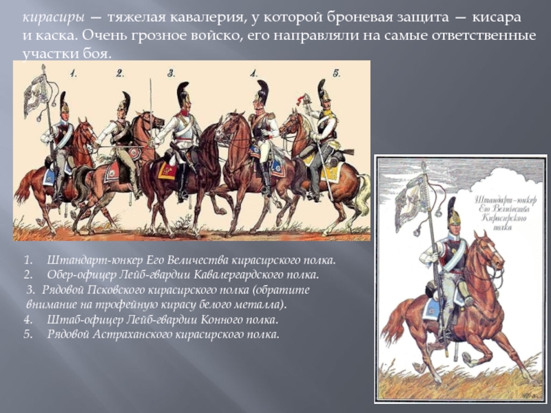 4. Штаб-офицер Лейб-гвардии Конного полка. 5. Рядовой Астраханского кирасирского полка.