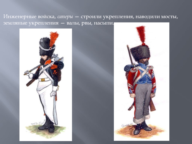 1. Рядовой 20 -го егерского полка. 2. Унтер-офицер 21 -го егерского полка. 3. Штаб-офицер Лейб-гвардии Егерского полка. 4. Унтер-офицер Лейб-гвардии Егерского полка. 5.Обер-офицер Лейб-гвардии Финляндского полка. 6. Рядовой Лейб-гвардии Финляндского полка.