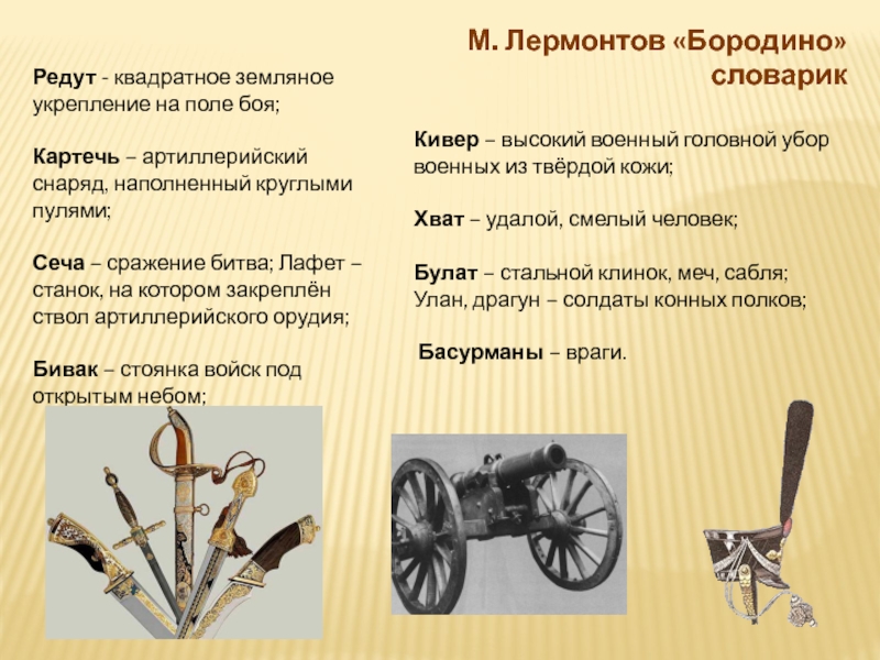 Булат – стальной клинок, меч, сабля; Улан, драгун – солдаты конных полков;