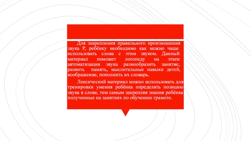 Лексический материал можно использовать для тренировки умения ребёнка определять позицию звука в слове, тем самым закрепляя знания ребёнка полученные на занятиях по обучению грамоте.