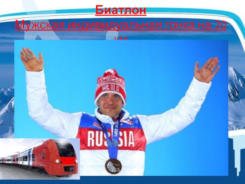 Слайд 30Биатлон  Мужская индивидуальная гонка на 20 км