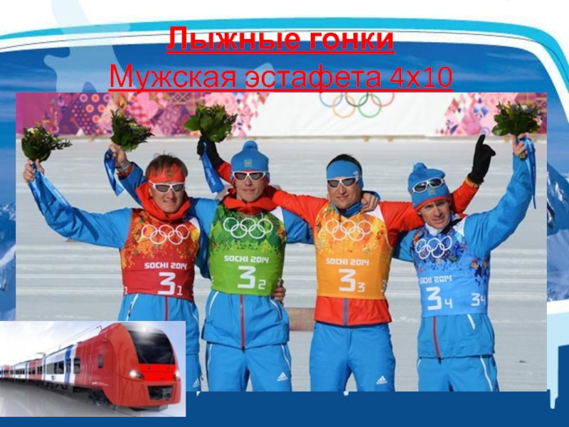 Слайд 24Лыжные гонки Мужская эстафета 4х10