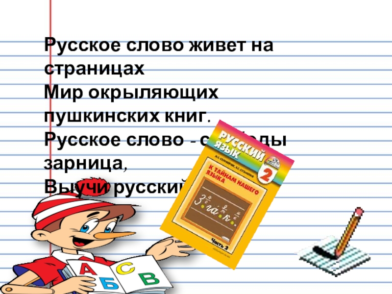 Русское слово живет на страницах Мир окрыляющих пушкинских книг. Русское слово - свободы зарница, Выучи русский язык!