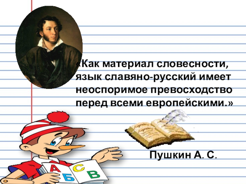Слайд 3«Как материал словесности, язык славяно-русский имеет неоспоримое превосходство перед всеми европейскими.»