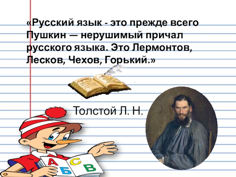 Слайд 2«Русский язык - это прежде всего Пушкин — нерушимый причал русского