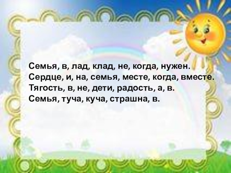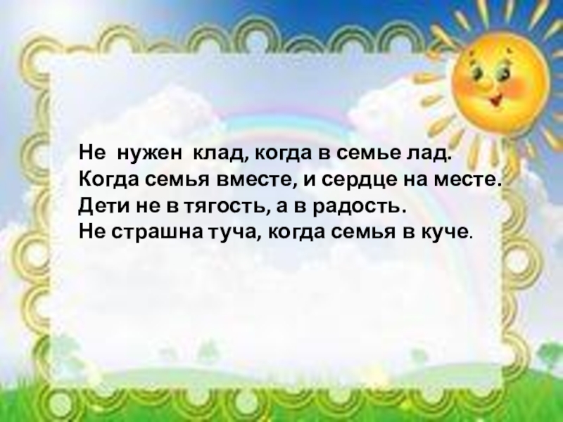 Слайд 6Семья, в, лад, клад, не, когда, нужен.