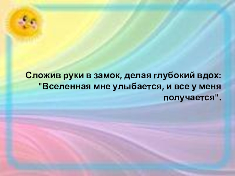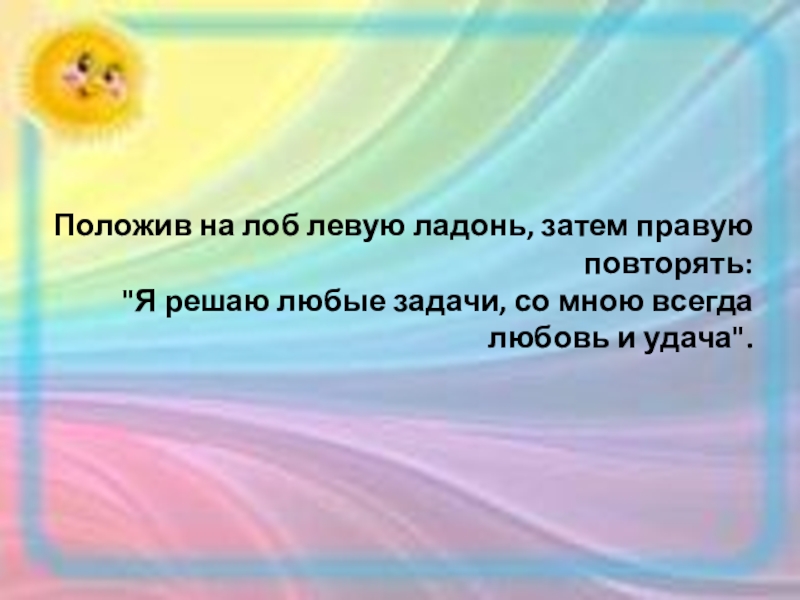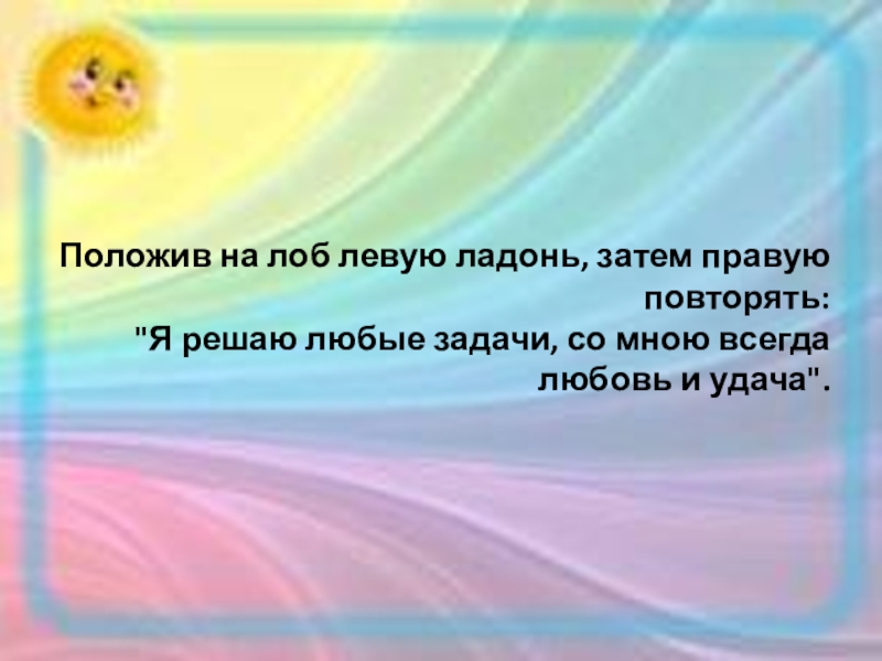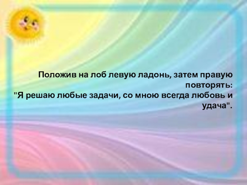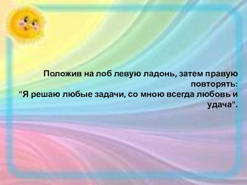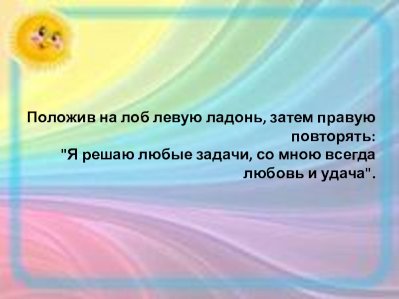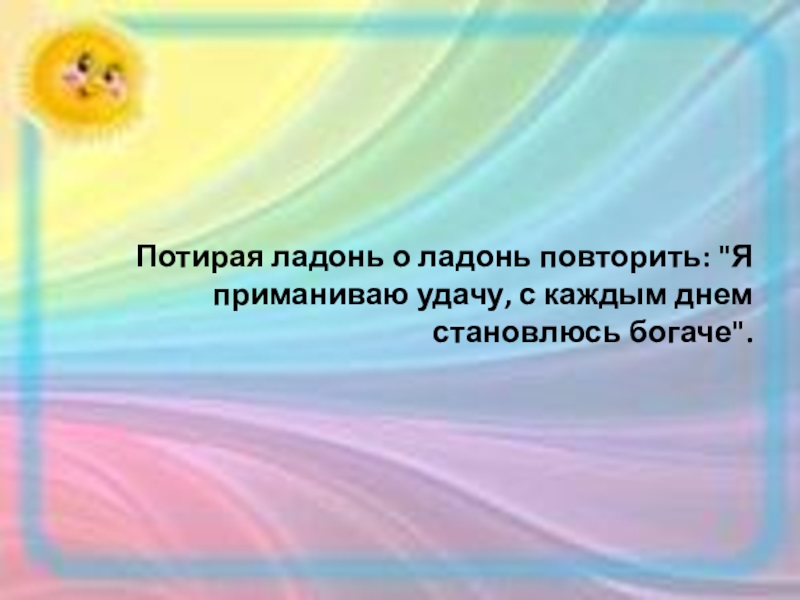 Слайд 25Потирая ладонь о ладонь повторить: "Я приманиваю удачу, с каждым днем становлюсь