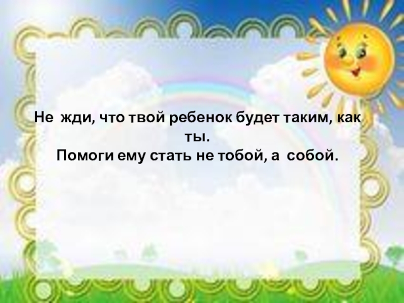 Слайд 32Не жди, что твой ребенок будет таким, как ты.