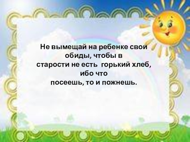 Слайд 37Не вымещай на ребенке свои обиды, чтобы в