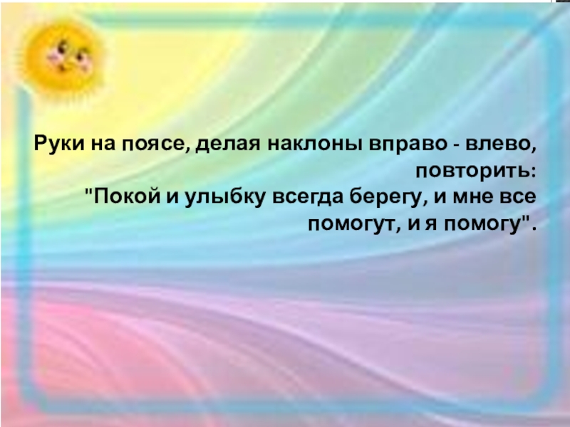 Слайд 26Руки на поясе, делая наклоны вправо - влево, повторить: