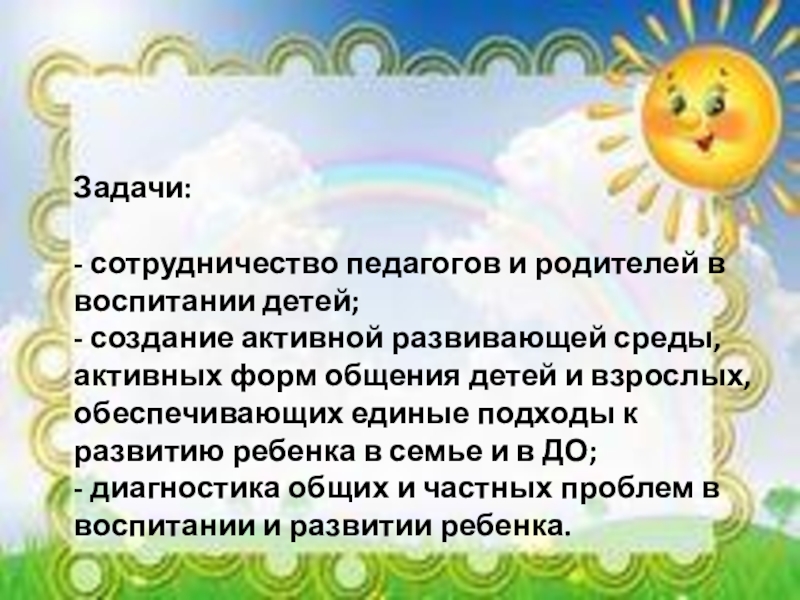 среды, активных форм общения детей и взрослых, обеспечивающих единые подходы к развитию ребенка в семье и в ДО;
