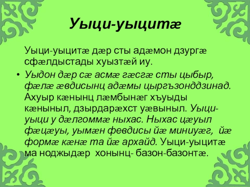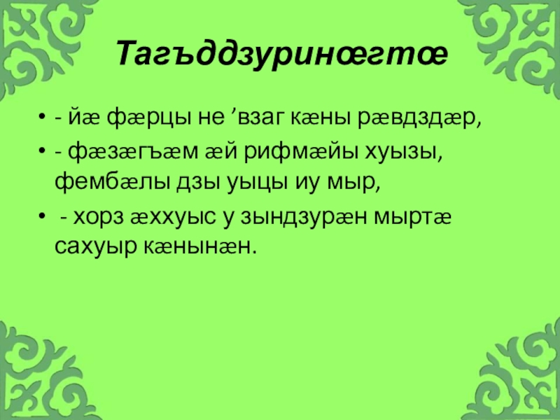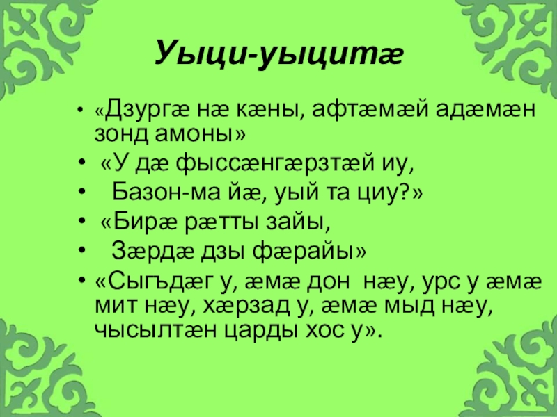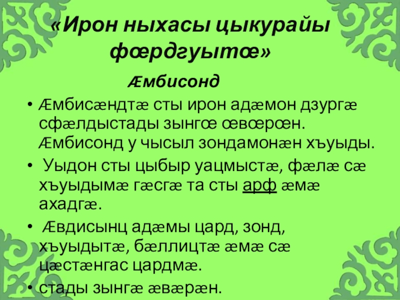 Слайд 9«Ирон ныхасы цыкурайы фœрдгуытœ»