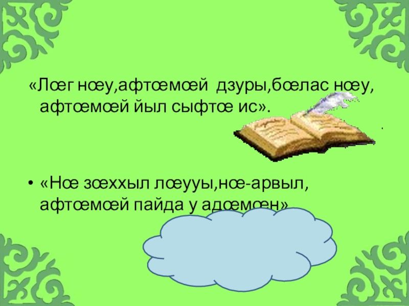 Слайд 10 «Лœг нœу,афтœмœй дзуры,бœлас нœу,афтœмœй йыл сыфтœ ис».
