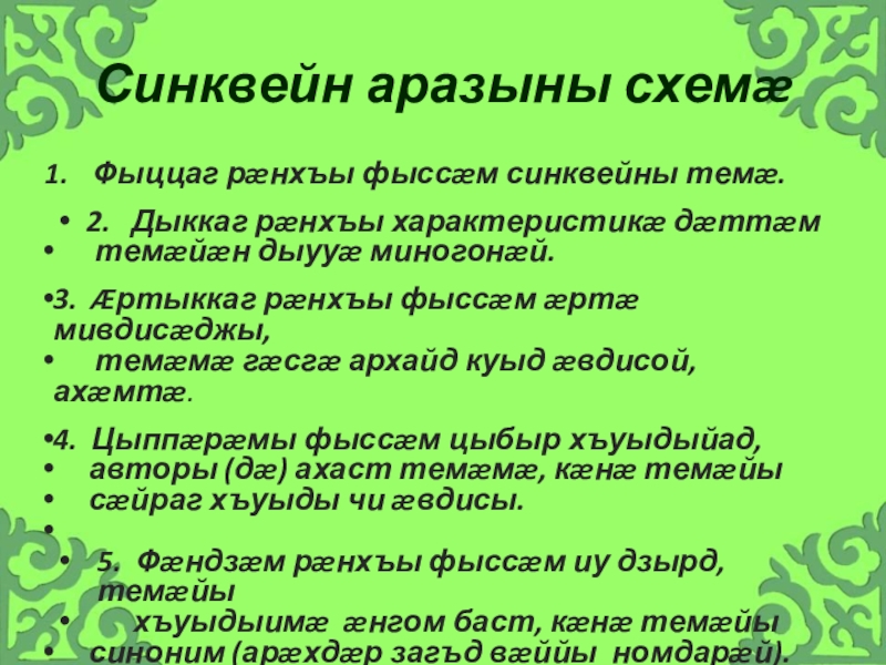 Фыццаг рæнхъы фыссæм синквейны темæ.