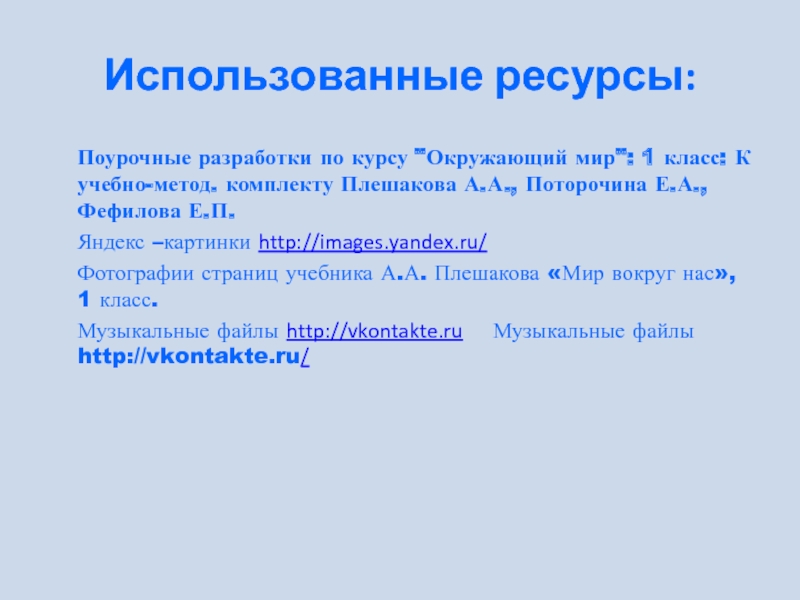 Использованные ресурсы:  Поурочные разработки по курсу