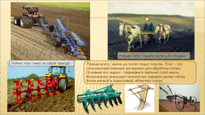 Раньше плуг тащили волы или лошади