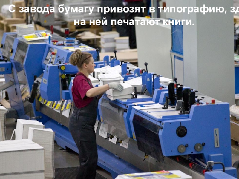 Слайд 12С завода бумагу привозят в типографию, здесь на ней печатают книги.