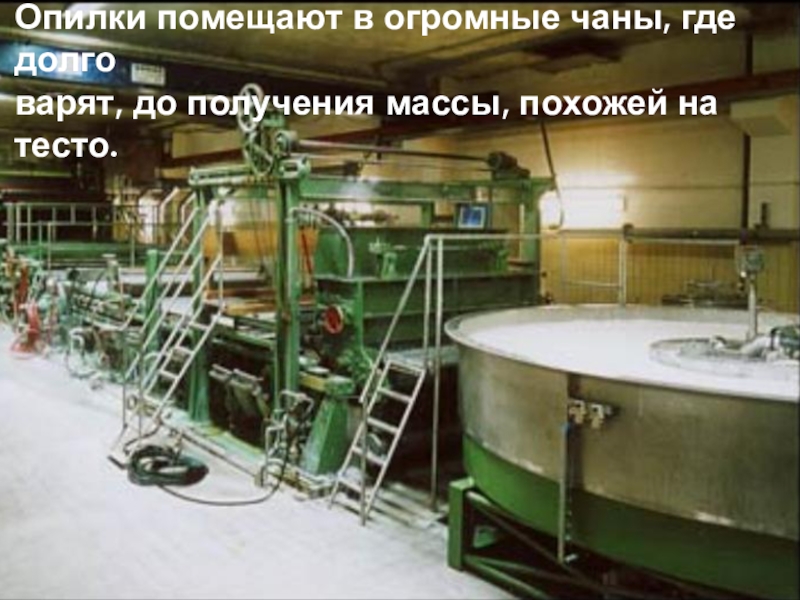 Слайд 9Опилки помещают в огромные чаны, где долго