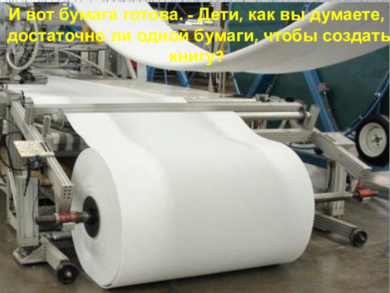 И вот бумага готова. - Дети, как вы думаете, достаточно ли одной бумаги, чтобы создать книгу?
