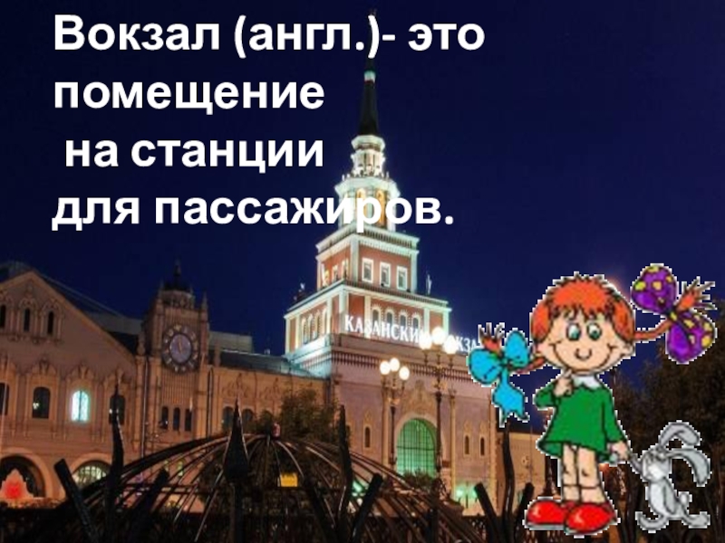 Вокзал (англ.)- это помещение на станциидля пассажиров.