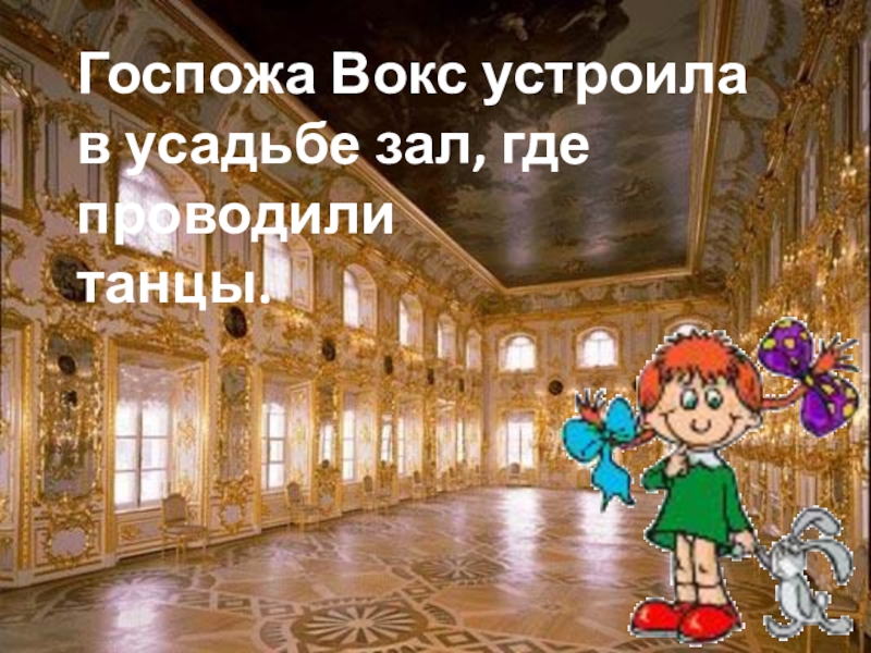 Госпожа Вокс устроила в усадьбе зал, где проводилитанцы.