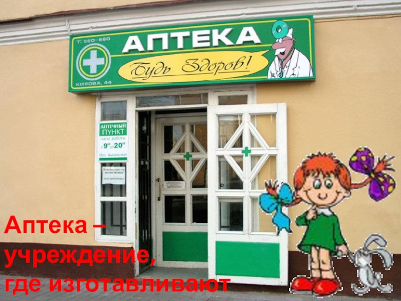 Аптека – учреждение, где изготавливают и продают лекарства.