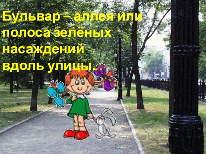 Бульвар – аллея или полоса зелёных насажденийвдоль улицы.