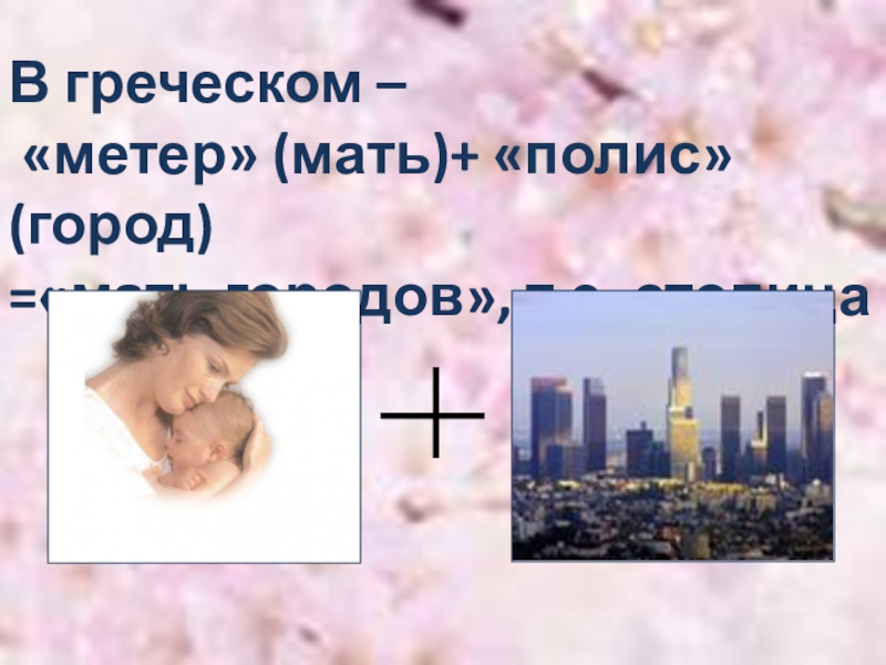 В греческом – «метер» (мать)+ «полис» (город) =«мать городов», т.е. столица