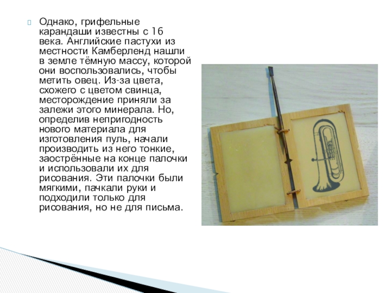 Слайд 4Однако, грифельные карандаши известны с 16 века. Английские пастухи из местности