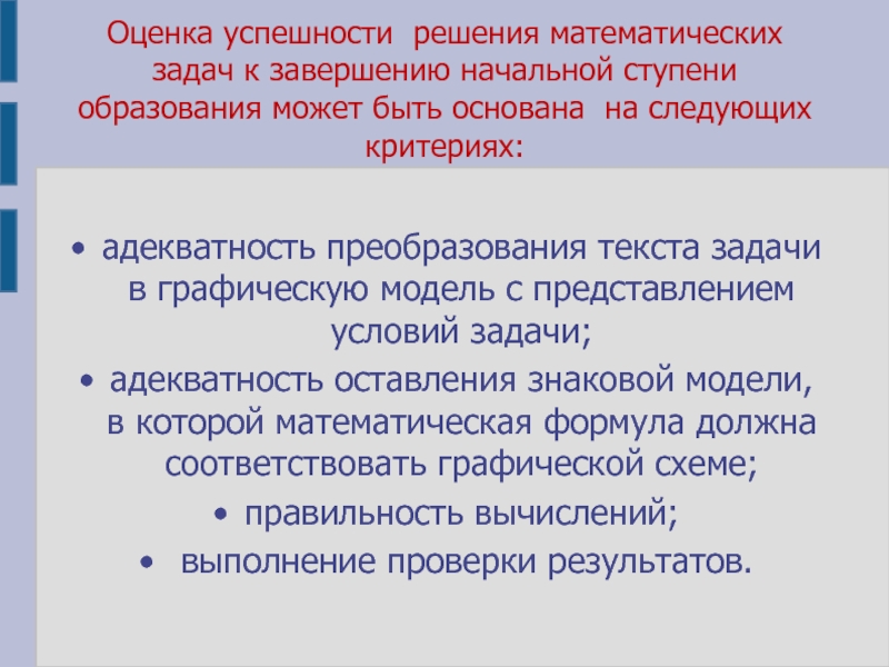 адекватность преобразования текста задачи в графическую модель с представлением условий задачи;
