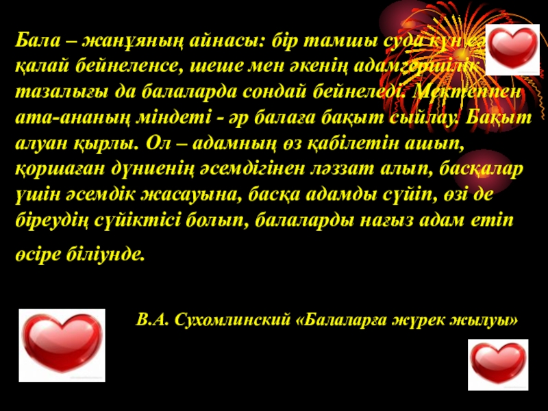 В.А. Сухомлинский «Балаларға жүрек жылуы»