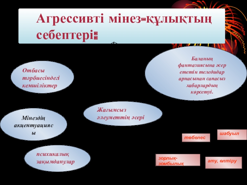 әрекеттер (бағыттану,бұзақылық, ұрып –соғу,өлтіру, зорлау)