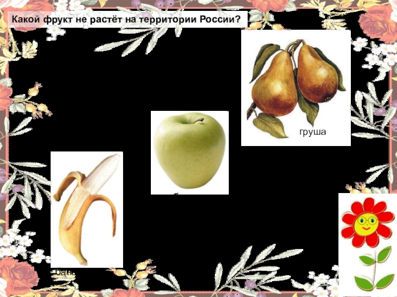Какой фрукт не растёт на территории России?бананяблокогруша
