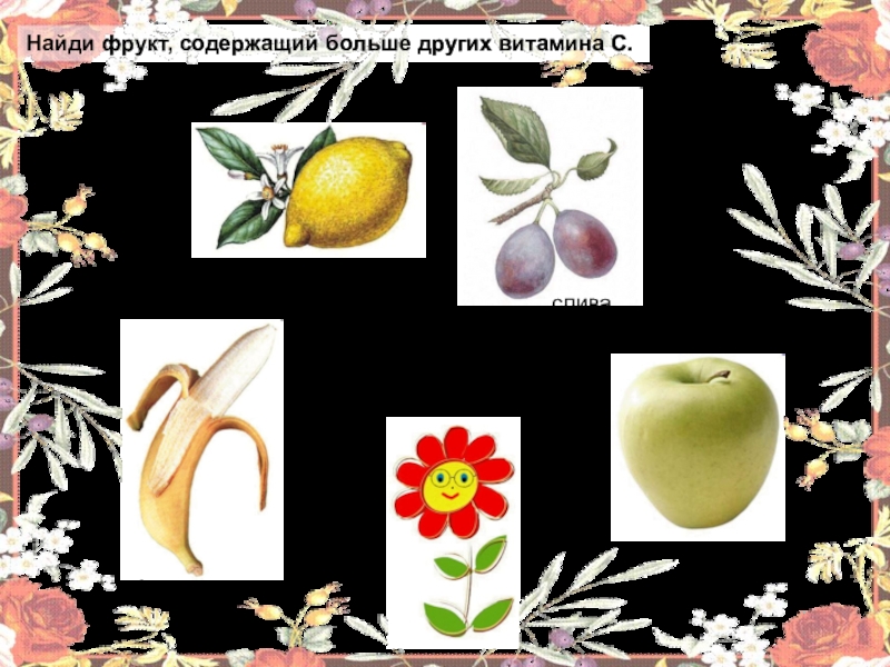 Слайд 12Найди фрукт, содержащий больше других витамина С.