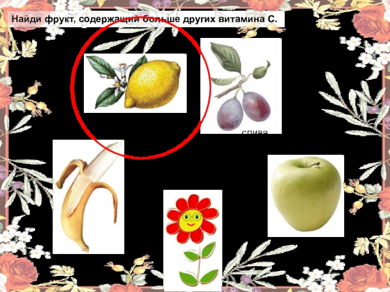 Слайд 13Найди фрукт, содержащий больше других витамина С.