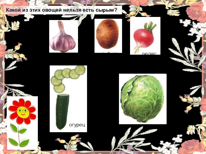 Слайд 4Какой из этих овощей нельзя есть сырым?.