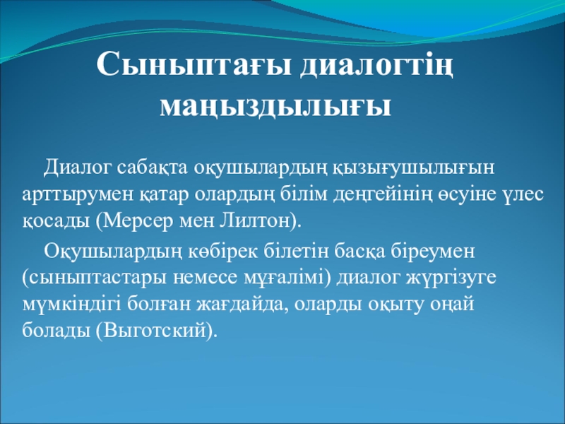 Слайд 3Сыныптағы диалогтің маңыздылығы