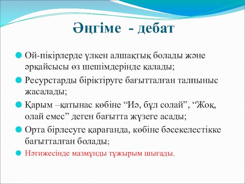 Слайд 7Әңгіме - дебат