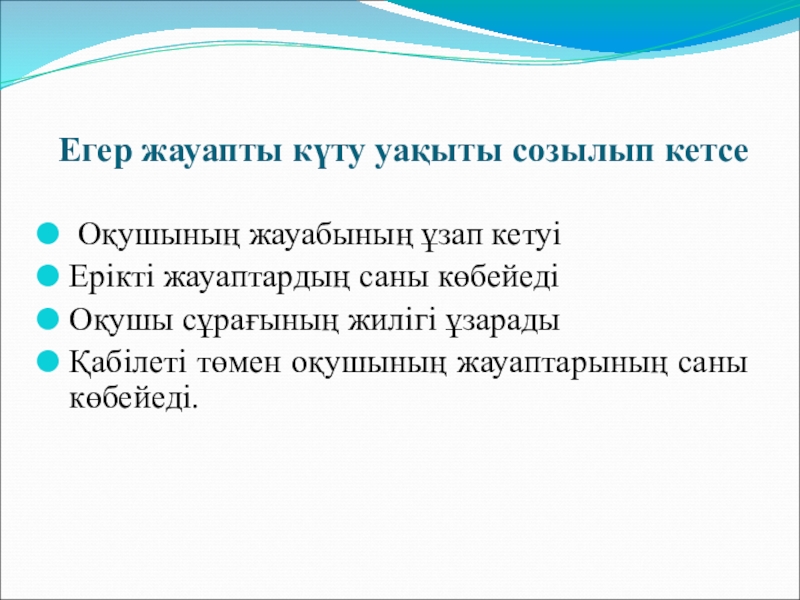 Слайд 18Егер жауапты күту уақыты созылып кетсе