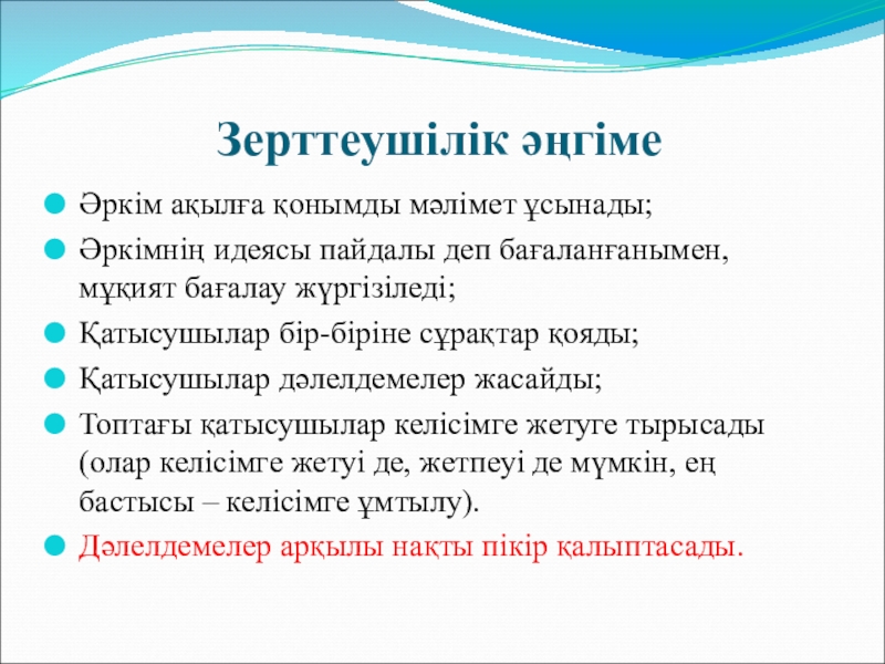 Слайд 9Зерттеушілік әңгіме