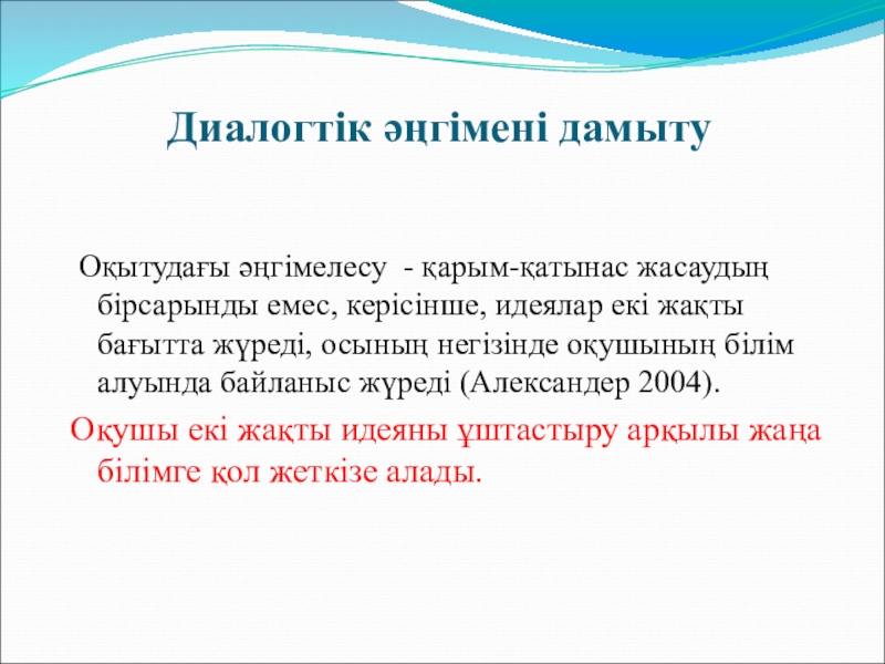 Слайд 5Диалогтік әңгімені дамыту