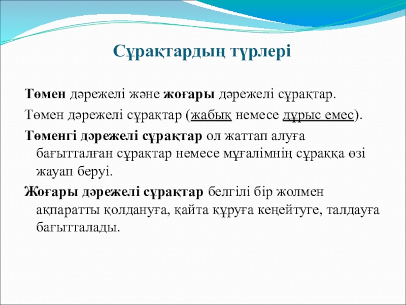 Төмен дәрежелі және жоғары дәрежелі сұрақтар.