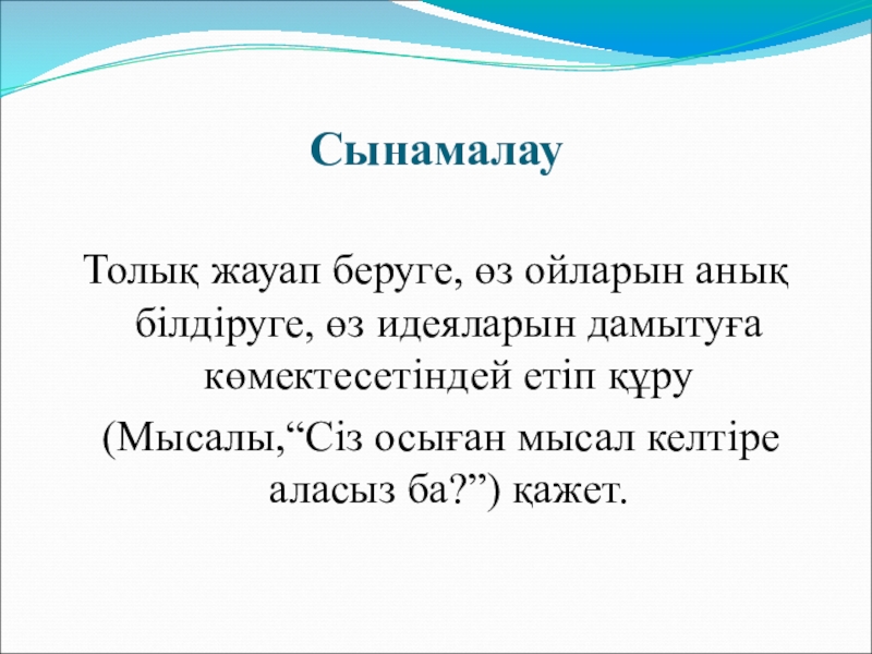 Толық жауап беруге, өз ойларын анық білдіруге, өз идеяларын дамытуға көмектесетіндей