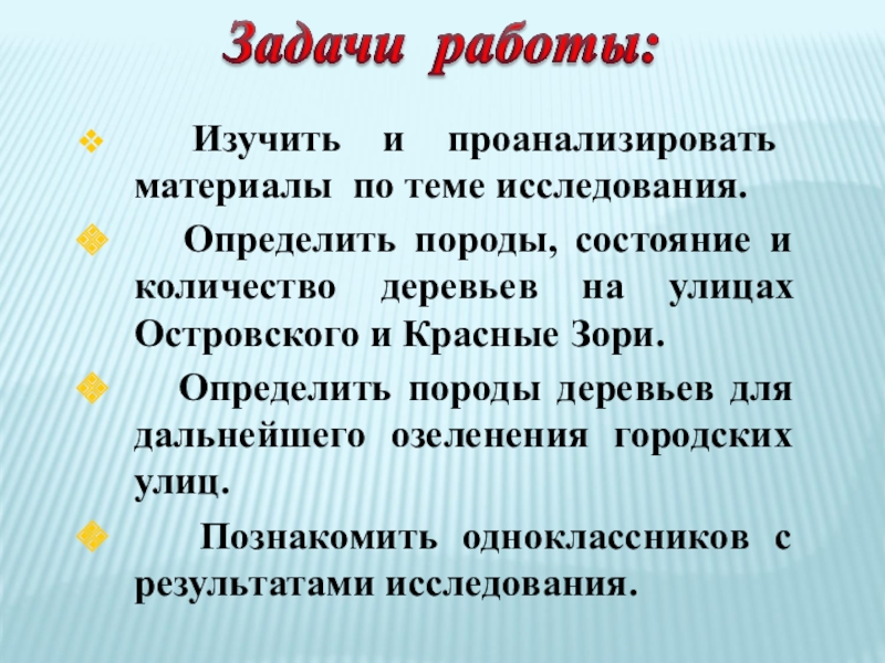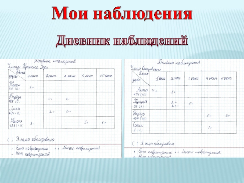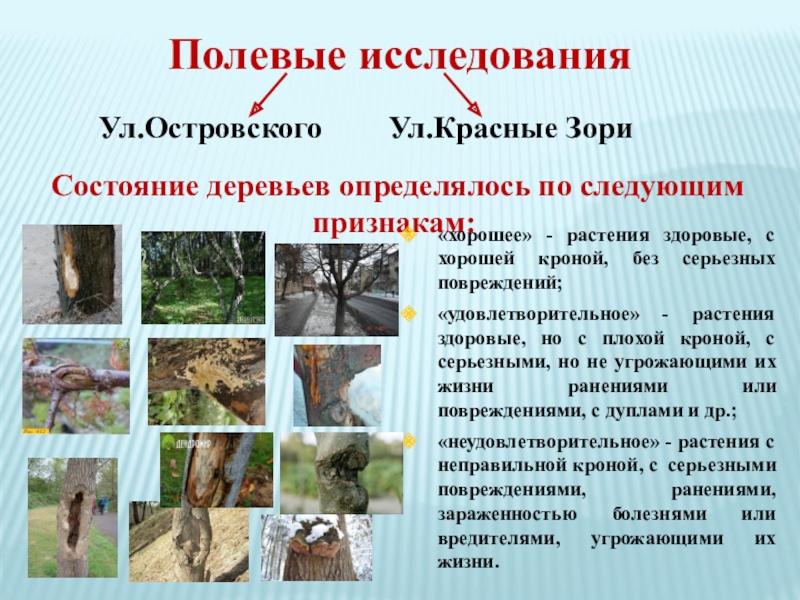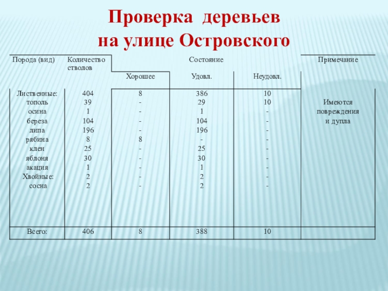 выполнены подсчет количества, определение породы и оценка состояния насаждений