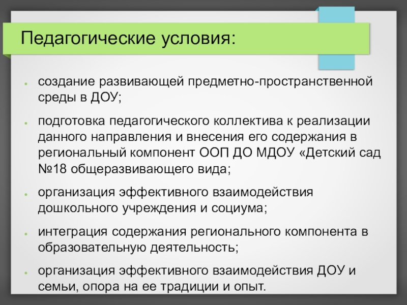 данного направления и внесения его содержания в региональный компонент ООП ДО МДОУ «Детский сад №18 общеразвивающего вида;