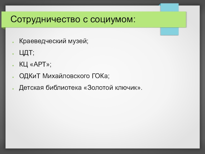 Слайд 15Сотрудничество с социумом: